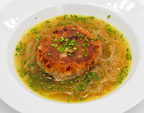 Essen wie auf der Alm. Deftige Kasspressknödel in einer gesunden Zwiebelsuppe